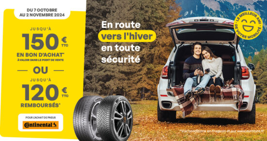 Promotion pour l’achat de pneus Continental 2025 Du 6 octobre au 15 novembre 2025, profitez de l’offre Continental jusqu’à 150€ offerts* […]