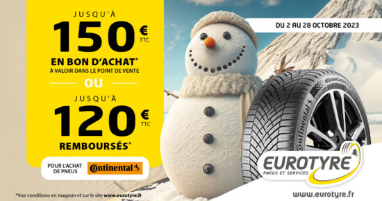 Du 2 au 28 Octobre 2023, profitez de l’offre Continental pour l’achat de 2 ou 4 pneumatiques Continental été, hiver […]